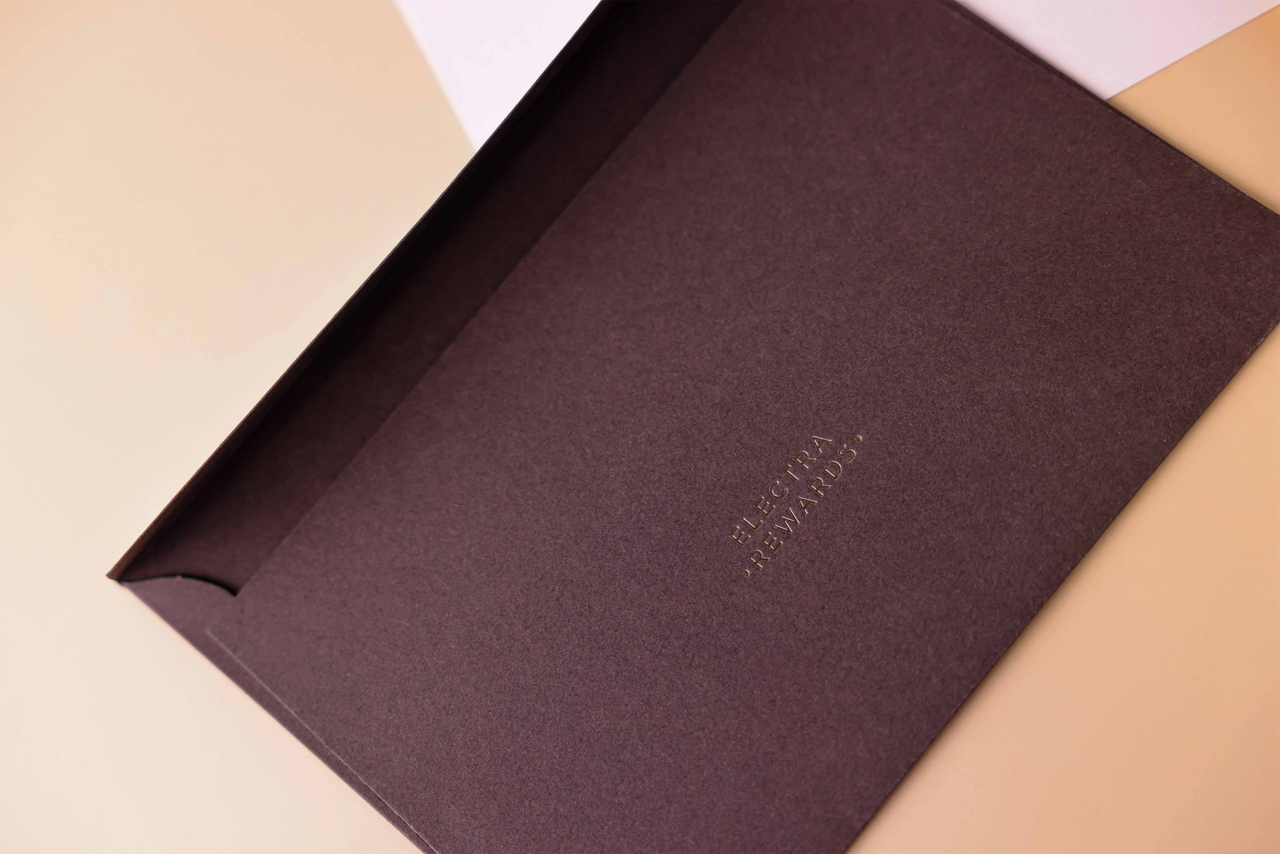 Experience the feel of a luxury envelope, crafted from hard deep brown paper with your logo in gun color foil. Ideal for sending invitations or official correspondence while showcasing your brand at its finest. Choose the paper that best matches your brand colors for a cohesive presentation.